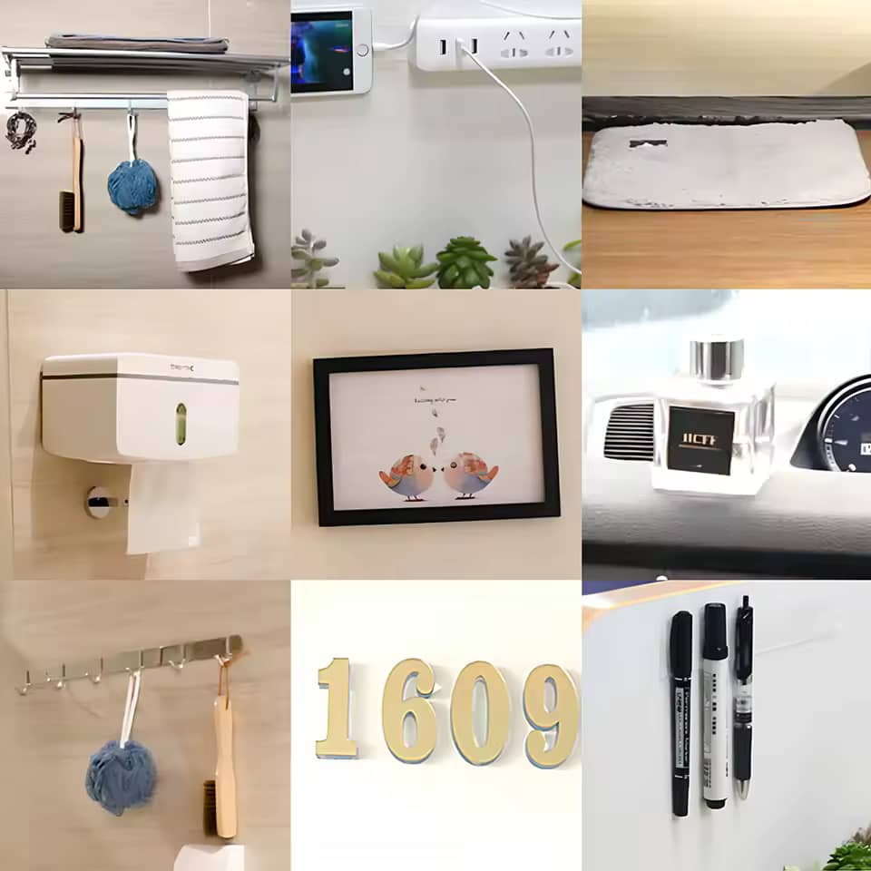 Strong grip for everything around the house.Used this tape to mount my router and some small frames. Super easy and no damage at all.